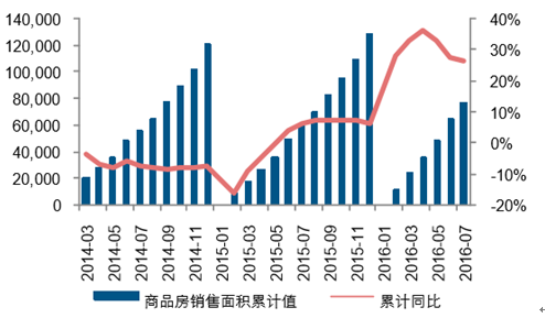 2016H1 商品房銷售累計銷售面積同比增長 28%