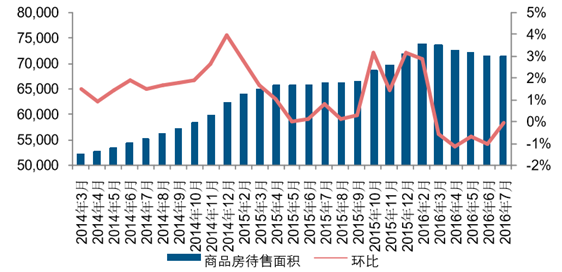 2016 年6月全國商品房未售面積降至 7.13 億平方米(萬平方米)