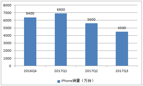 2016-2017年各季度iPhone銷量預測趨勢圖