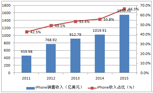 2011-2015年iPhone銷售收入及占比