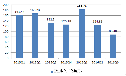 2015-2016年各季度蘋果公司中國市場營業(yè)收入