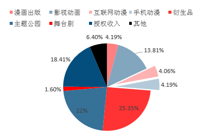 核心提示:我國動漫行業產值在 2014 年已突破 1000 億元,從產業結構 來看,2013 年動漫影視直接相關市場占比不到 20%,漫畫領域知名 IP 更是寥寥無幾,下游泛衍生品產業中, 主題公園占比近半,商品化衍生品等凸顯用戶喜愛度的市場并不是十我國動漫行業產值在 2014 年已突破 1000 億元,從產業結構 來看,2013 年動漫影視直接相關市場占比不到 20%,漫畫領域知名 IP 更是寥寥無幾,下游泛衍生品產業中, 主題公園占比近半,商品化衍生品等凸顯用戶喜愛度的市場并不是十分發達。