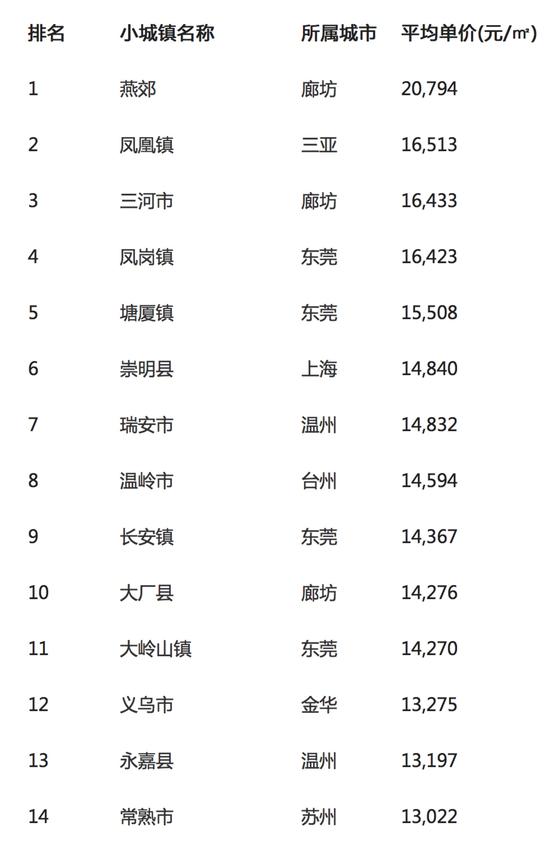 在燕郊之后,廊坊還有3個小城鎮入圍,其中三河市以16433元/平方米的價格高居第3,大廠以14276元/平方米位居第10,香河位居第19,固安位居第24。