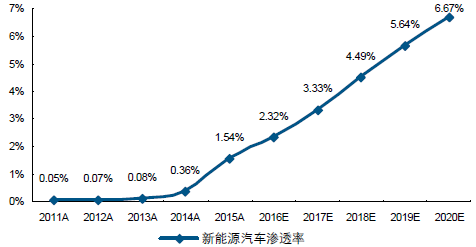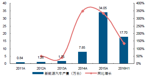 2016-2020 年新能源汽車年化復合產量增速或達到39.47%