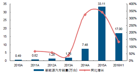 2016年中國新能源汽車產銷量分析及發展趨勢預測