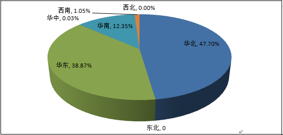 目前,我國兩輪腳踏自行車的產量集中在華北和華東兩片區域,占比分比為47.70%和38.87%