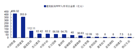 建筑上市企業公告中標PPP 項目入庫情況。上市建筑企業公告中標PPP 項目中入庫項目共有39 個,合計投資1234 億元,占總投資的41%。其中入庫項目金額排名靠前的公司為中國鐵建、中國建筑、隧道股份、龍元建設、中國中冶。入庫項目數量與金額仍是國企占優。