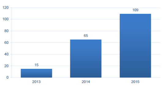 核心提示:2013-2015年全球消費(fèi)級(jí)無人機(jī)市場(chǎng)規(guī)模從14.95元億增長(zhǎng)至110.5億元,銷量從60萬臺(tái)增長(zhǎng)至430萬臺(tái),年均復(fù)合增速分別為171.87%、167.71%。按照大疆創(chuàng)新出口占比70%-80%,粗略估計(jì)2015年中國(guó)市場(chǎng)約15億元。全2013-2015年全球消費(fèi)級(jí)無人機(jī)市場(chǎng)規(guī)模從14.95元億增長(zhǎng)至110.5億元,銷量從60萬臺(tái)增長(zhǎng)至430萬臺(tái),年均復(fù)合增速分別為171.87%、167.71%。按照大疆創(chuàng)新出口占比70%-80%,粗略估計(jì)2015年中國(guó)市場(chǎng)約15億元。