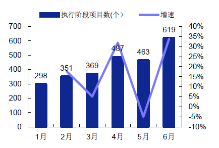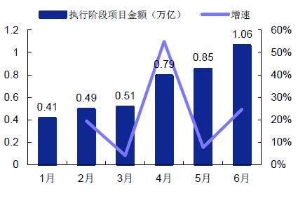 PPP 落地加速趨勢明確,今年預計將是落地大年。PPP 落地加速趨勢明確,迎來落地大年。根據項目庫數據分析,截止至6 月30 日,進入執行庫(包括執行、移交、采購)項目數占入庫總數比例為12%,較1 月底增加4.1 個pct。進入執行階段(落地項目)的項目數達619 個,相較5 月底增長33.69%,增加數量為156 個;落地金額約1.06 萬億,較五月底增長25%。PPP 落地加速趨勢十分明確,今年迎來落地大年,預計全年落地項目投資總額將達到2 萬億元。預計2016-2018 年落地項目將達到2/3/4 萬億。