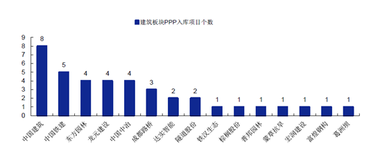 建筑上市企業公告中標PPP 項目入庫情況。上市建筑企業公告中標PPP 項目中入庫項目共有39 個,合計投資1234 億元,占總投資的41%。其中入庫項目金額排名靠前的公司為中國鐵建、中國建筑、隧道股份、龍元建設、中國中冶。入庫項目數量與金額仍是國企占優。