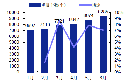 PPP 迎來春暖花開日,總量規模龐大。根據財政部PPP 項目信息庫數據,截止至6 月30 日,財政部PPP 項目庫入庫項目數為9285 個,較5 月底增加641 個,增長7.4%;投資總額10.6 萬億元,較5 月底增加7100 億元,增長7%。同時各地方政府仍有大量項目在申報過程中。