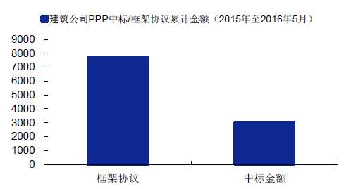截止至2016 年6 月,我們重點跟蹤的建筑上市公司共披露PPP 項目145 個(包括框架協議與落地項目),總投資額10714 億元,其中:1)落地項目85 個,(確定項目投資額)合計投資3028 億元;2)框架協議31 個,合計投資7686 億元。