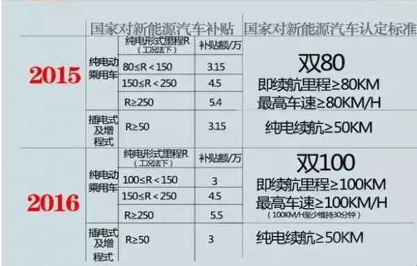 2015年與2016年我國新能源汽車補貼對比
