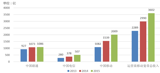 2013-2015 各運營商移動數據收入