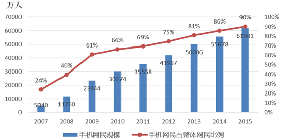 中國手機網民規模及其占網民比例
