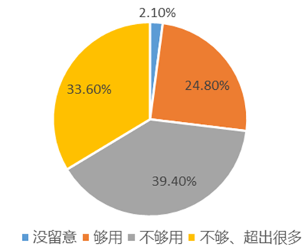 同時4G服務的推進讓流量的使用速率加快,讓許多消費者產生了流量資費的擔憂。 流量費用已經成為個人用戶使用移動互聯網服務的主要約束。尤其是移動網絡下影音類應用的流量消費仍然偏低、多數消費者使用場景是在家中的 WIFI 環境下。根據調查用戶普遍認為流量使用過快,存在不夠用的現象。