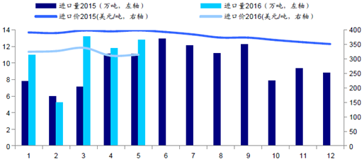 核心提示:2016年1-5月中國進口苜蓿草總計55.29萬噸,同比增26.77%;進口金額總計1.74億美元,同比下降1.93%。5月中國進口苜蓿草13.16萬噸,同比上升16.59%,環比上升9.48%;進口額3976.93萬美元,同比下降14.22016年1-5月中國進口苜蓿草總計55.29萬噸,同比增26.77%;進口金額總計1.74億美元,同比下降1.93%。5月中國進口苜蓿草13.16萬噸,同比上升16.59%,環比上升9.48%;進口額3976.93萬美元,同比下降14.21%。5月苜蓿草平均到岸價302.16美元/噸,同比下降26.42%,環比上升0.57%。
