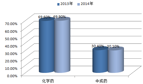 2013—2014年皮膚病用藥市場化學(xué)藥/中成藥市場份額