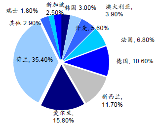 2016年1-5月進口嬰幼兒配方奶粉主要來源國及比重