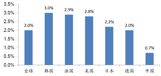 國內體育產業結構失衡,GDP占比低。目前中國體育產業結構嚴重失衡,賽事服務及健身服務等核心產業的市場化程度過低,僅占體育總產值的21%,遠低于美國同期水平57%。我國的體育消費主要集中于運動服裝、運動器材等實物消費為主,賽事及健身服務消費偏低。相比之下美國商業化成熟的體育產業結構中,體育產業結構較為均衡。隨著中國體育行業商業化的進程,未來產業結構有望向美國靠齊。中國體育產業不均衡的另一個體現在于體育行業占總體GDP的比重遠遠小于世界平均水平,隨著體育行業的發展,未來有望提高在總GDP的占比,從而提升整個行業的規模。
