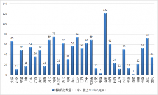 我國村鎮銀行區域分布格局(截止2016年5月底)