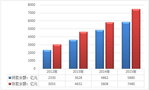 截止2014年底我國村鎮銀行貸款余額為4862億元,較上年同期增長1234億元,存款余額為5808億元,存款余額增加1176億元。2015年底我國村鎮銀行貸款余額為5880億元,存款余額為7480億元。