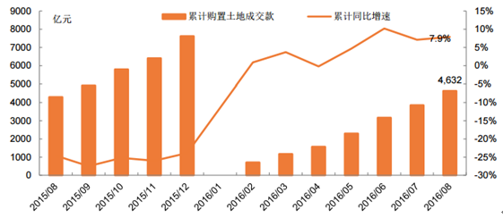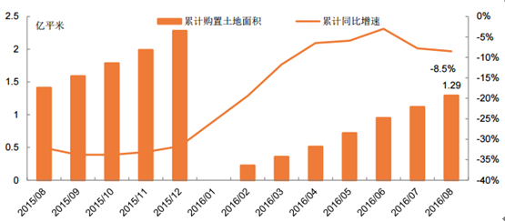 1-8 月土地購(gòu)置面積降幅擴(kuò)大