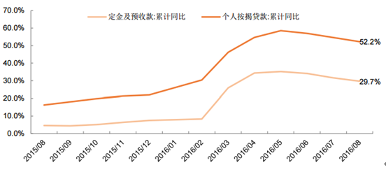 2016年1-8月個人按揭貸款同比增長 52.2%