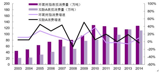 2003-2014 年國內雙酚 A-環氧樹脂消費量變化