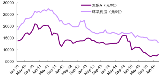 2010-2016 年國內雙酚 A -環氧樹脂價格走勢