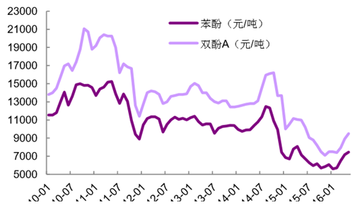 2010-2016 年國內苯酚-雙酚 A價格走勢