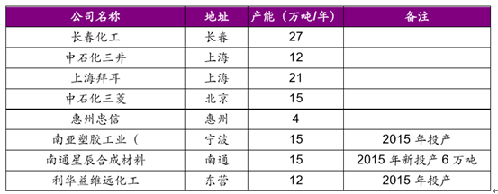 2015 年國內雙酚 A產能統計