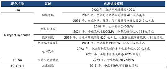 權威機構預測全球未來電化學儲能市場規模
