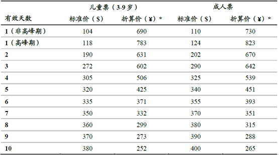 相比之下,奧蘭多的迪士尼樂園集群有非常全面的票務體系,從單日票到十日票應有盡有,能夠供游客駐留超過一個禮拜,平均每日票價也直線下降。受益于大集群的閉環生態和完善的會員體系,迪士尼提供票價上的優惠能夠從餐飲、住宿、其他娛樂活動和衍生品上得到更多的回報。