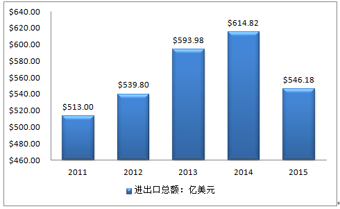 年份進口額:美元出口額:美元2015$26,636,333,998$27,981,994,3662014$30,151,147,276$31,330,779,4742013$29,159,126,476$30,239,223,1852012$26,555,698,573$27,424,745,4282011$25,029,464,560$26,270,293,198資料來源:公開資料整理