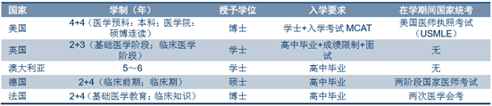 發達國家醫學教育以精英教育為主,大致分為高等醫學教育、全科規范化培訓、繼續教 育三個階段,高等教育階段主要由高等醫學院校對滿足要求的學生進行醫療基礎知識的培訓, 學制在 5-8 年之間;全科規范化培訓階段將對全科和專科進行劃分,此階段培訓通過后將授 予全科醫生資質,時間在 2-3 年之間;繼續教育階段貫穿全科醫生整個職業生涯,不斷提高 全科醫生的醫療知識及技術水平。