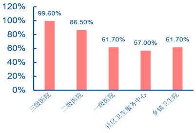 從供給側來說,大型醫院過載運行情況嚴重,2015 年 1-9 月三級醫院病床使用率高 達 99.6%,但另一方面,基層醫療機構的利用效率較低,一級醫院、社區衛生服務 中心、鄉鎮衛生院的病床使用率只有 60%左右;同時,由于大型醫院過度醫療、醫 保資金使用不合理的問題,我國醫保資金結存率逐漸下降,收不抵支的風險不斷加 大。