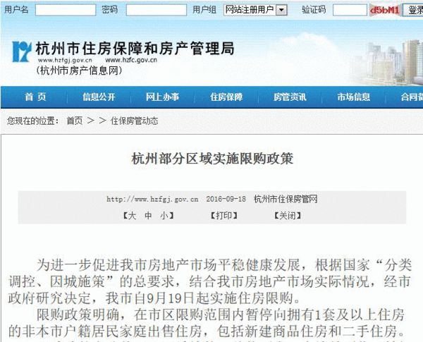 核心提示:杭州市住保房管網官網截圖 摘要:【杭州部分區域9月19日起實施住房限購政策】限購政策明確,在市區限購范圍內暫停向擁有1套及以上住房的非本市戶籍居民家庭出售住房,包括新