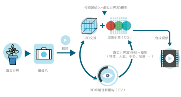 增強現實(augmented reality,后文簡稱 AR)是一種將虛擬化圖像疊加到現實場景中 的計算機視覺技術,屬于人機交互與計算機視覺的研究交集。AR 利用攝像頭、傳感器等設 備,對現實影像的位置進行實時感知、計算,再將虛擬影像(平面圖形或三維模型)疊加到 現實影像上,從而實現虛擬與現實的“無縫拼合”。在 AR 移動設備上,虛擬影像的位置和角 度還需根據使用者身體和視線的移動而變化,帶給人們沉浸式的視覺體驗。從信息的角度來 看,AR 將現實場景信息與虛擬影像信息融合,從而極大提高人們依靠視覺獲取的信息量。