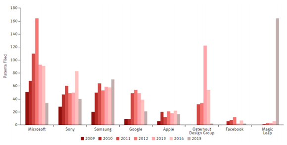 2009 年- 2015 年各大公司 AR 技術專利申請數量