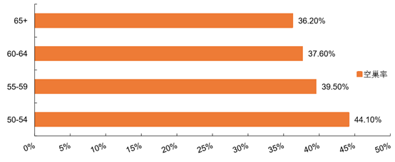 根據國家衛計委發布的《中國家庭發展報告(2015)》,我國家庭規模呈小型化趨勢,2-3 人家庭成主體類型,單人家庭、空巢家庭不斷涌現。空巢老人占老年總數近一半,其中獨居老人占老年總數 約 10%,僅與配偶居住的老人占 41.9%。伴隨空巢家庭的持續增長,居家養老模式難以持續,需要 其他養老模式來補充,為養老產業的發展提供了發展空間。
