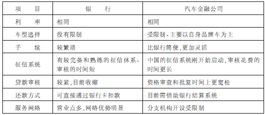 銀行和汽車金融公司汽車貸款優(yōu)劣比較表