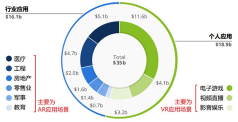 受限于 AR 硬件設備(特別是頭戴設備)尚不成熟,軟件領域的發展或將滯后,但從長 期來看,其市場規模是十分可觀的。根據高盛的預測,2025 年全球 AR/VR 軟件行業整體規 模將達到 350 億美元。前文已述,高盛對 AR/VR 的預測偏保守,所以從市場規模極有可能 超過這一預測數字。按照應用場景劃分,AR 類軟件和 VR 類軟件基本上平分天下,前者主 要服務于行業應用,后者則面向個人娛樂消費市場。
