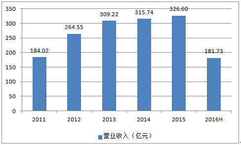 2011-2016年貴州茅臺營業收入趨勢圖