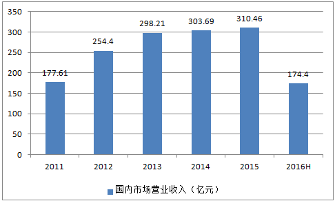 2011-2016年貴州茅臺國內市場營業收入趨勢