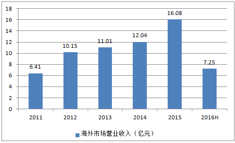 2011-2016年貴州茅臺海外市場營業收入趨勢