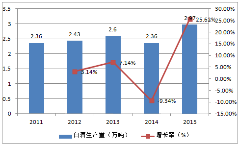 2011-2015年中國白酒產量