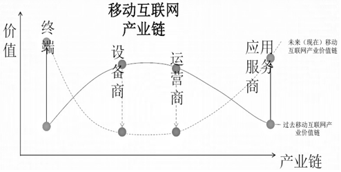 在傳統(tǒng)的產業(yè)模式中,運營商可以通過對用戶和計費的控制來占據產業(yè)鏈的絕對主導地位,相關企業(yè)需要通過運營商向終端客戶提供服務和銷售產品而處于負數地位。在移動互聯(lián)網時代,以內容應用平臺為核心的產業(yè)生態(tài)環(huán)境逐步形成,原有以運營商為核心的產業(yè)模式受到沖擊。業(yè)務和應用平臺成為整個產業(yè)鏈的核心環(huán)節(jié),運營商在價值鏈環(huán)節(jié)中的核心地位發(fā)生扭轉,任何廠商可以通過掌控的平臺直接向終端用戶提供服務。