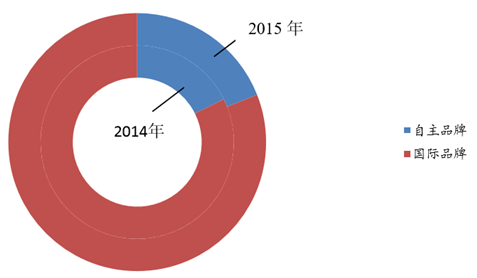 近年來國內(nèi)自主品牌EPS產(chǎn)銷量快速增長。根據(jù)行業(yè)專家交 流數(shù)據(jù),2014年我國自主品牌EPS產(chǎn)品銷量約為175.7萬件,占國內(nèi)EPS產(chǎn)品總銷量 的17.7%;2015年自主品牌EPS產(chǎn)品銷量約229.3萬件,同比增長30.5%,市占率達到19%,較2014年提高1.3個百分點。自主品牌EPS銷量快速增長,與產(chǎn) 品成熟度提升以及自主品牌乘用車市占率提升、消費升級帶來自主品牌車型EPS裝配 率提升有關(guān)。