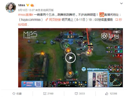 另外微博、微信的出現也使得主播能夠更好的凝聚粉絲。主播可以通過微博、微信公眾平臺向粉絲直接推送直播時間和直播地址,尤其是在更換直播平臺時能夠有效的將粉絲引流到新的平臺上。